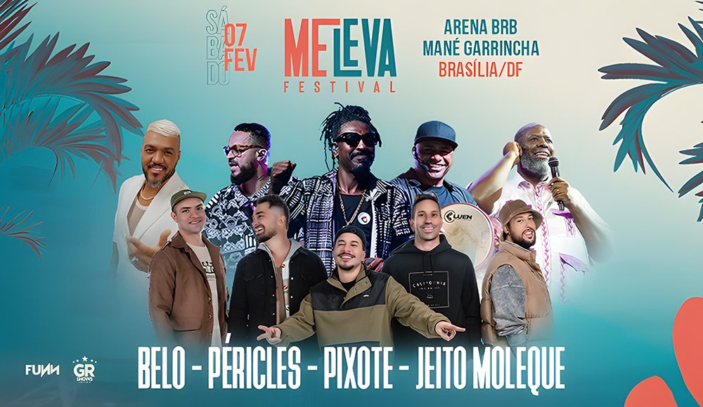No dia 07 de fevereiro de 2026, acontece o Me Leva Festival Brasília 2025 com Belo, Pixote, Péricles e Jeito Moleque.